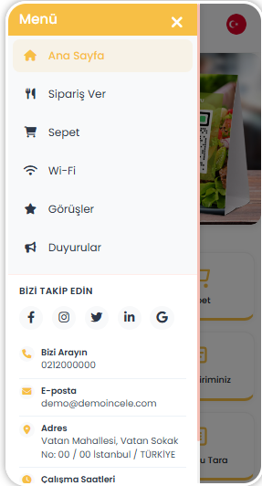 Küresel Erişim: Dinamik 5 Dil Özelliği sayesinde, yabancı müşterilerinize sorunsuz bir menü deneyimi sunarak potansiyel müşteri kitlenizi genişletirsiniz.